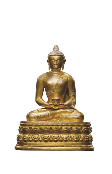 拍卖信息显示,这尊佛像属于蒙古扎纳巴扎尔风格,其纹饰华丽、工艺精湛,面目庄严肃穆。在东亚,阿弥陀佛与释迦牟尼佛一样受人尊敬,他是大乘佛教净土宗的核心人物。这尊金光闪闪的佛像出自蒙古扎纳巴扎尔艺术流派,该流派由扎纳巴扎尔创建于17世纪。