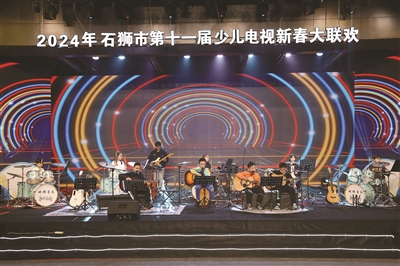 本报讯 1月6日晚,2024年石狮市第十一届少儿电视新春大联欢之硬糖音乐专场在石狮服装城展览艺术中心精彩上演。来自硬糖音乐培训机构的师生奏响架子鼓、吉他、贝斯等乐器,带领现场和屏幕前的观众感受乐器演奏的艺术魅力。