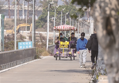 昨日是周末,又逢好天气,在石狮湿地公园内,不少市民带着家人出来游玩。记者在石狮湿地公园看到,市民们在公园内骑自行车、观鸟亲近大自然。 (记者 颜华杰)