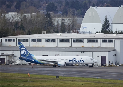 1月6日,美国阿拉斯加航空公司发生事故的波音737 MAX 9型客机停靠在美国波特兰的一处维修站