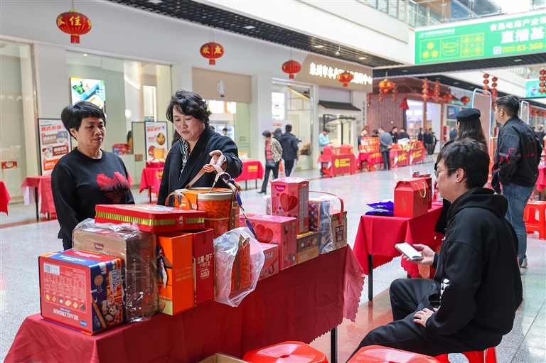 福州佛跳墙、福鼎白茶、武夷山岩茶……对接会现场的年货选品展区,24家参展企业纷纷展示自家的拳头产品、精品礼盒,品类涵盖零食、肉制品、预制菜、海鲜、滋补品、坚果、菌菇、茶叶、酒水、水果等。“已经有几家留下了联系方式,我们将反馈给厂家,进一步接洽。”武夷山八佰文化传媒有限公司负责人林金聪告诉记者,此次他们带来的是武夷岩茶文创产品,因设计款式新颖、创意十足,吸引不少线上采购商的兴趣。而在石狮国际食品城宁夏馆展区前,宁夏枸杞原浆、果脯、滩羊肉等产品吸引了不少参观者驻足,“不少人对枸杞原浆特别感兴趣,订了很多货。”宁夏馆负责人刘晓表示,此次带来的都是宁夏当地特色产品,希望通过对接会平台让更多人认识宁夏品牌,加快“宁货出塞”,为闽宁协作出份力。