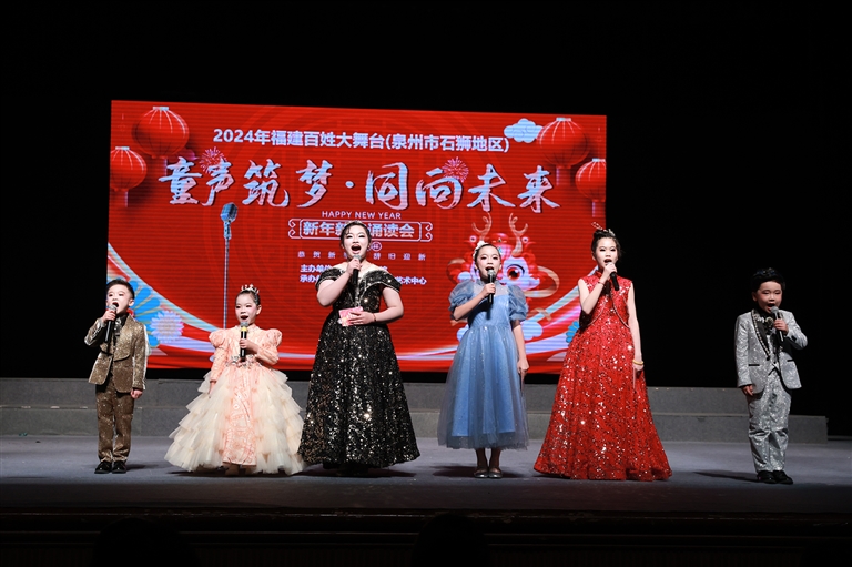 本报讯 “品诗会友·乐享诗韵”2024年福建百姓大舞台(泉州市石狮地区)“童声筑梦·同向未来”新年新诗诵读会于1月8日在我市音乐厅上演,近200名小演员带着积极饱满的状态和真诚的声音,为观众奉献一场“语言艺术盛宴”。