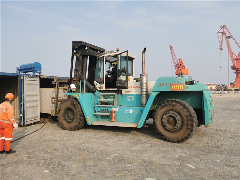 石湖港 首次接卸搭载集装箱的非洲石材