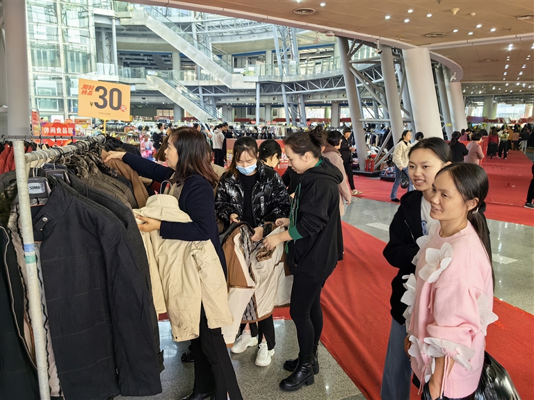 随着春节一天天临近,不少市民将采购春节新衣提上办事议程。近日记者走访看到,石狮服装城商圈迎来一波新年消费高峰,不少市民来此选购心仪的服装,现场人气十分旺盛。市民蔡女士说:“一件外套平时商场里卖几百元,这里一百多甚至几十块就能买到,质量也不会差。用批发价买衣服,‘很香’!”(记者 林本鸣 郭雅霞)