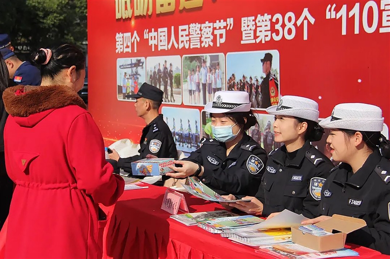 活动中,石狮公安紧紧围绕“砥砺奋进110 一心为民保安宁”主题,采取发放宣传材料、警用器械展示、常识普及等形式,宣传110各警种的主要职责、服务范围、接处警程序、报警要素、处置要求以及反诈骗、交通安全、禁毒等知识,各联动部门也进行了用水、用电、用气、用火安全以及医疗急救知识宣传。