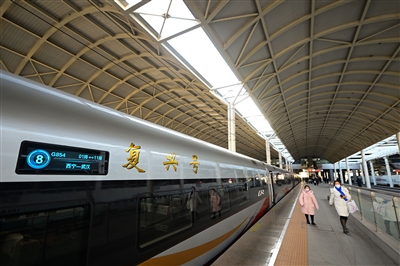 1月11日,乘客在西宁站准备搭乘复兴号智能动车组列车。记者从中国铁路青藏集团有限公司了解到,1月10日零时起,中国铁路青藏集团有限公司实行新的列车运行图,西宁至西安、成都、重庆、银川、北京、上海、乌鲁木齐、武汉方向均可开行直达动车组列车。武汉至西宁首次开行复兴号智能动车组列车,这是复兴号智能动车组首次驶上青藏高原。(新华)