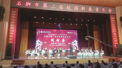 本报讯 1月14日下午,“弦弘爱国情怀 乐咏时代华章”石狮市第二届校园新春音乐会在石光中学淑润大礼堂举行。市委常委、宣传部部长郑天助,市政协副主席王莉萍,市有关部门负责人,学校师生代表等出席观看。