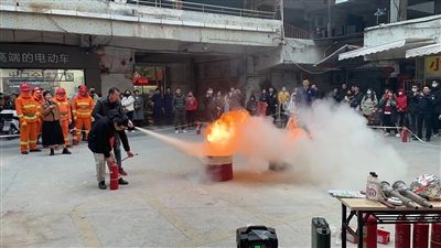 培训中,讲师重点讲解火灾对生命的危害、如何提早预防、如何处置早期火情,做到早发现早预防,打早打小。同时,对电器线路防火、消防隐患的排查、人员应急逃生、各类消防器材的使用等进行详细讲解。随后,主办方组织应急演练,现场为大家演示灭火器的使用方法,参加培训的人员也上场体验灭火器灭火。