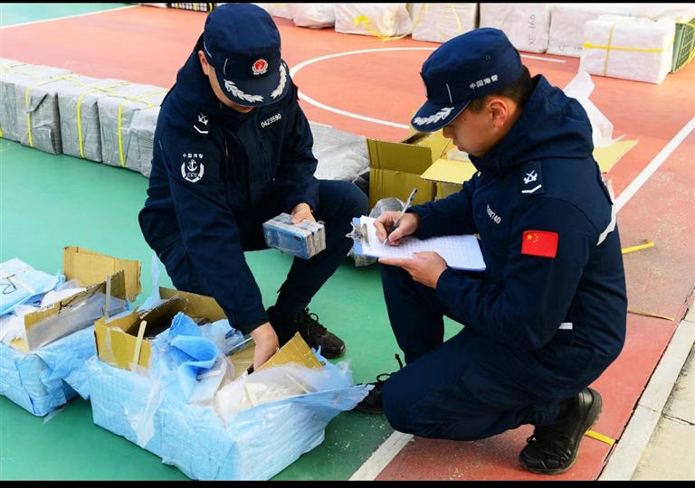 1月14日晚11时,泉州海警局执法员在工作中发现,湄洲湾泉港附近海域疑似存在船舶凭借夜色掩护从事走私犯罪活动。执法员立即研判海情海况、制定行动方案,派遣执法艇对目标海域进行针对性巡查。同时,积极协调驻地公安部门对走私货物潜在上岸地点进行全方位布控,海陆联动实施查缉。15日凌晨,执法艇在诚峰渔港外围养殖区发现一艘可疑钢制渔船,吃水较深,疑似载有货物。执法员随即喊话示警亮明执法身份并对其靠帮登临检查。经查,船舱内装载有酒类、电子产品、鱼翅等大量无正规手续杂货物。执法员当即依法对其实施扣押。目前,案件正在进一步侦办中。