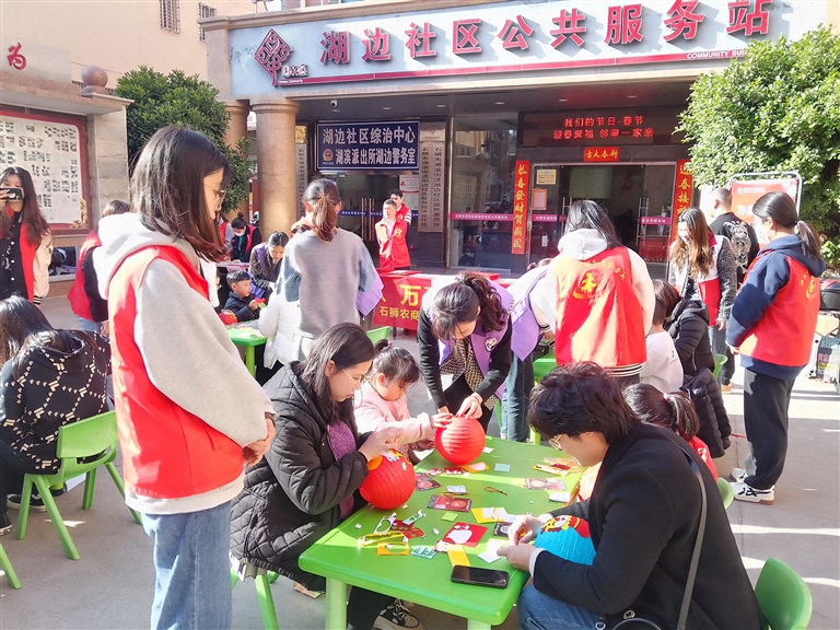 从湖边社区工作人员处了解到,当天,社区联合石狮市残疾人联合会、湖滨社工站、石狮市第二实验幼儿园共同举办活动,邀请社区亲子及热心居民一起制作手工灯笼,装扮社区,邻里间有趣互动,一幅幅乐融融的画面尽收眼底。活动期间,还邀请亲子及居民一起在愿望墙上写下新年留言,用赞美、鼓励、期盼、鞭策等话语,送给自己、家人、朋友等。(记者 黄翠林 通讯员 吴志聪)