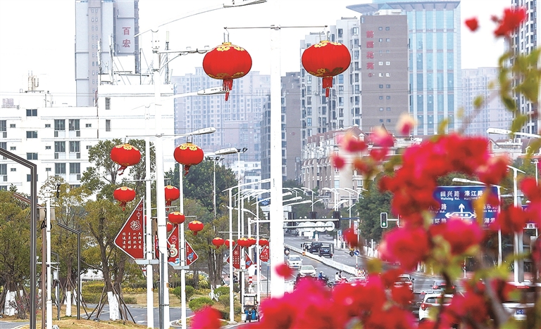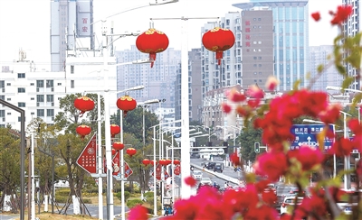本报讯 1月19日,记者在峡谷旅游公路学府公园段看到,工作人员正在安装大红灯笼。挂上大红灯笼的公路,年味渐浓。现场工作人员告诉记者,他们除了在峡谷旅游公路安装大红灯笼,接下来还将陆续在我市几条市区主干道安装大红灯笼,营造浓浓的节日氛围。(记者 颜华杰)