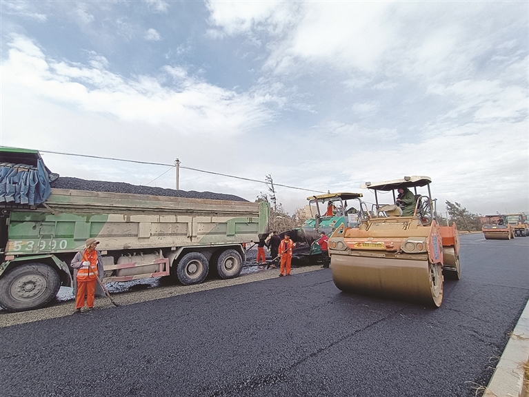 本报讯 下料、摊平、压实,1月20日上午,国道228线(大厦至莲坂段)提级改造项目,开始沥青摊铺。记者走访现场并从国投集团交建公司处获悉,主路将在春节前完成面层沥青摊铺并通行。