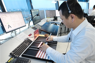 从飞行动态可以清楚地看到,平均每6—7分钟就有一架飞机起落。在15时—16时30分间,有20架飞机间隔密集起飞落地。空管们身后的架子上,放着泡好咖啡的保温杯,却没有人转身饮用。转眼16时30分,交接班时间到了,接班同事到岗,许徐敏默默做好交接班工作,10分钟后才拿起杯子解渴:“每趟航班的起飞、降落,都是一趟不容分毫差错的旅程,因此在当班的两小时,不能带手机,职业性不喝水、不上厕所,前者是规定,后者是责任。保天路通畅,护旅客平安是空管的使命。”