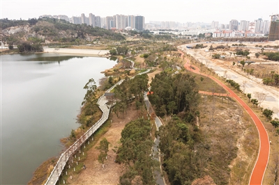 “整条绿道长约1.42公里,紧挨着学府公园,同步完成的沿线绿化提升总面积约17389平方米,让整个生态公园的景观更加丰富。”城建公司相关负责人介绍。