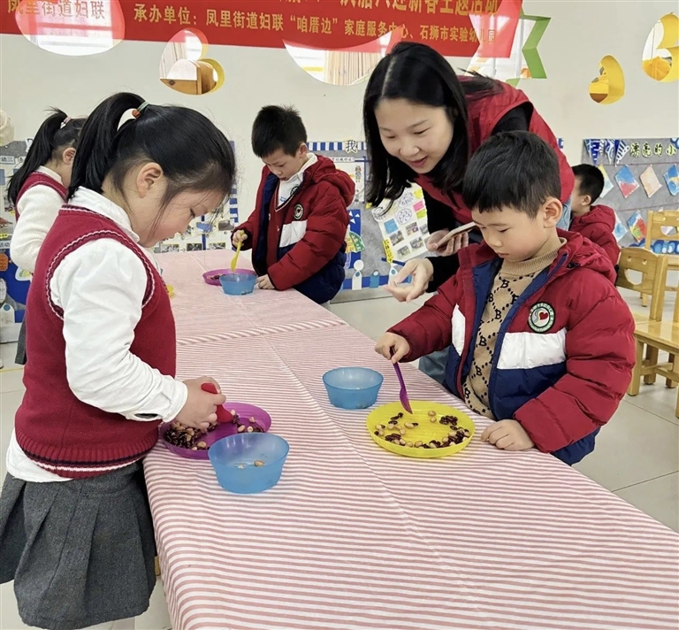 本报讯 近日,石狮市妇联,凤里街道妇联、“咱厝边”家庭服务中心,石狮市实验幼儿园开展“童心知民俗·欢乐庆腊八”主题活动。