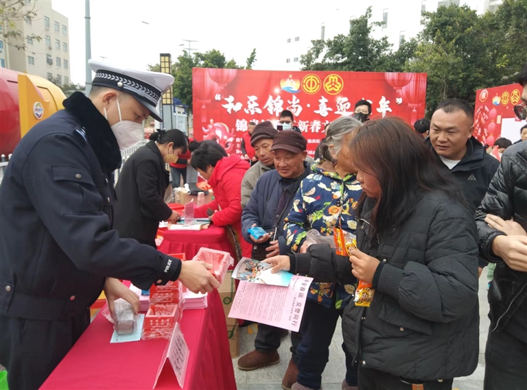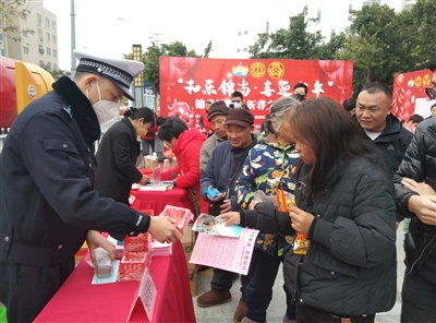 本报讯 在迎接新春到来之际,1月24日,锦尚镇联合永宁交警中队和辖区金融机构,共同开展以“促平安、迎新春”为主题的道路交通安全整治月集中宣传日活动。