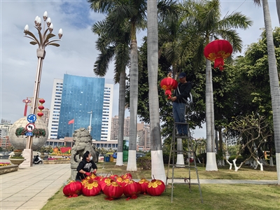 本报讯 春节脚步临近,吉祥喜庆的红灯笼是迎新年必不可少的元素。近日,记者在市人民广场看到,大小红灯笼已挂了起来。 记者获悉,根据石狮市城管局提前谋划、制定的“春节氛围计划”,该局利用一周左右的时间,围绕市人民广场、八七路、东港路、福辉路、濠江路、环湾大道、红塔湾旅游路、子芳路、石泉路、石泉二路、水头外线、石狮大道及市区各公园等位置,悬挂包括宫灯、串灯在内的大小红灯笼总数近5000个。(记者 王国良 郭雅霞)