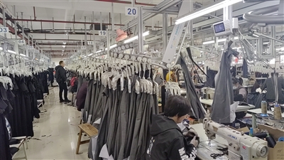 “公司休闲裤订单非常充足,目前的生产任务已排到今年5月底。为了保证订单顺利交付,我们提早积极备足物料,统筹安排工人赶生产,确保所有订单保质保量按时交付给全国各地客户,力争实现‘开门红’。”浪峰集团董事长叶长生说,现在公司的产能保持在日生产休闲裤5000多条。