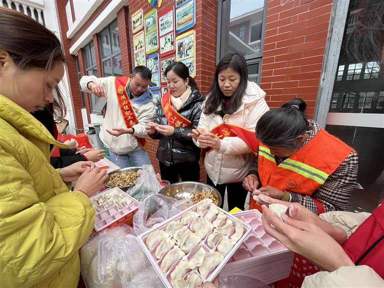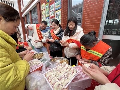 活动还设有工会宣传区、非遗手工区、春联书写区、包饺子区、“无诈”宣传区等,职工群众现场扫码入会、了解职工医疗互助、工会法律知识,免费领取新春“大礼包”,同时将桌子变成“厨台”,围坐在一起包饺子。经过近半个小时的努力,职工们的“成果”颇丰。当热气腾腾的饺子端上来时,大家发出一片欢呼声,与辖区环卫工、新形态工作者共同品尝美食、分享快乐,互道节日祝福。此次活动让职工在紧张忙碌工作之余放松身心,提前过个热闹欢腾、瑞气祥和的早年。