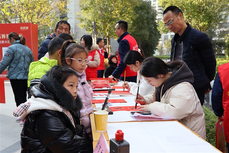翰墨书香迎新春,政策宣传入人心。现场,团市委组织志愿者为小区业主写春联送祝福,灵秀镇机关各办(中心)则组织志愿者通过分发宣传折页、带宣传知识的小礼品等,向业主开展安全生产、食品安全、垃圾分类、卫生健康等各类政策宣传。“通过深化近邻党建,推动资源下沉聚合,落实就地就近服务,弘扬和谐邻里精神,助推社会善治增效。”灵秀镇相关负责人介绍。(记者 康清辉 通讯员 王霞)
