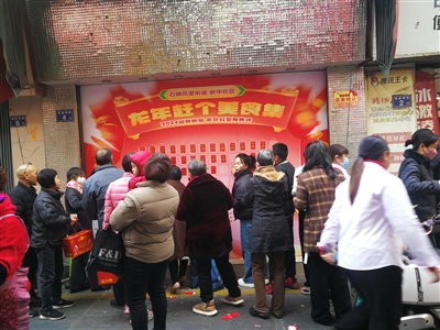 现场分批贴出500个红包,分别装有10元至40元不等的消费券让群众摘取(每人限领1个),凭消费券到指定店铺(摊点)购买食品,消费券可抵部分现金,不到一小时红包就被摘完。