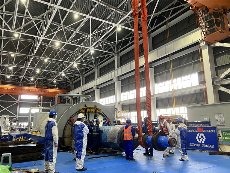 本报讯 1月23日下午,鸿山热电公司#2发电机转子顺利穿入定子膛内,回装工作一次成功,标志着该公司2A检修一个关键节点工作如期安全高效完成。