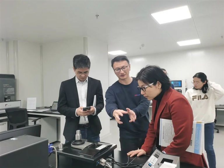 本报讯 日前,国家纺织面料馆总馆、江苏中纺联以及森地客相关专业人员一行来到中纺学石狮产业研究院,参观该院研发实验室和国家纺织面料馆。