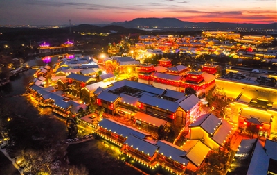茅山脚下的常州金坛东方盐湖城夜色(2023年12月22日摄,无人机照片)。 1月30日,记者从江苏省常州市统计局获悉,2023年常州市GDP达到10116.4亿元,按不变价格计算,同比增长6.8%。中国GDP“万亿城市”再添新成员。(新华)