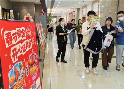 春节脚步越来越近,我市餐饮服务迎来节前消费热潮。1月31日下午6时,适逢晚饭时间,我市德辉广场餐饮服务区里,来来往往的食客络绎不绝。每家店门前都摆放着形式多样的菜品展示牌。记者注意到,一些店家围绕春节推出“春节限定款”“预订年夜饭”等多种餐饮服务,吸引不少顾客驻足咨询和预订。据现场一家餐饮店的工作人员介绍,他们店里专门设计了10道寓意吉祥团圆喜庆的春节主题菜品,不少市民咨询后都表示想尝尝鲜,目前已经收到几位顾客下单预订。(王国良 郭雅霞)