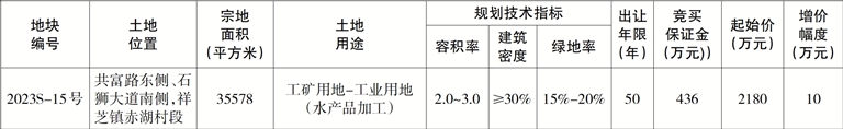 申请人竞得土地后应与祥芝镇人民政府、市工业信息化和科技局签订《监管协议》,否则取消其竞得资格。有意向报名的申请人报名时应了解确认《监管协议》有关内容。《监管协议》约定宗地建成投产后8年每年税收不低于 30万元/亩;该项纳税要求应为本宗地投产项目产生的新增税额,土地竞得人原已在本市纳税的,其公司在竞得土地前的纳税情况不计为本宗地新增税额。