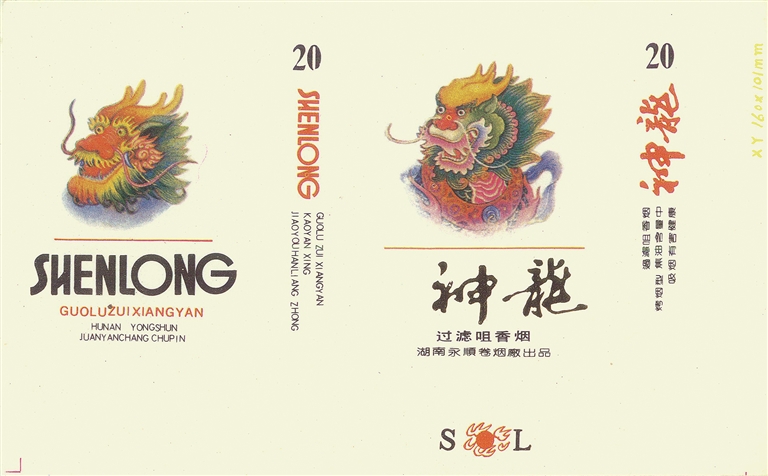 为迎接2000年的到来,神龙再次集中腾飞于20世纪90年代的国产烟标,如江西广丰卷烟厂出品的“千禧龙”烟标,主副版均于中国红底色上腾飞着一条金色团龙。江西兴国卷烟厂出品的“共贺千禧”烟标,主版是一枚面文为“共贺千禧”的花钱,副版于“龙年大吉”花钱上方,游动着一条由“2000”幻化成的腾龙。