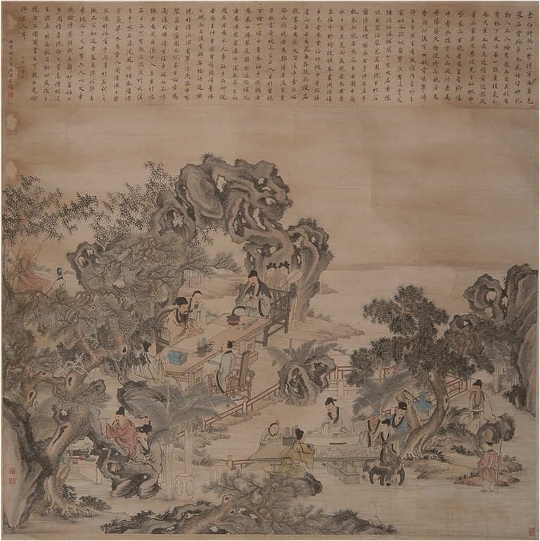 所谓“雅集”,即文人之间的聚会。从古至今,雅集无数,最著名的当为东晋时期“兰亭集会”,与会者41人,涉及王、谢、桓、庾四大家族,王羲之所书《兰亭序》被奉为“天下第一行书”,被后世文人学士争相临摹。翻遍史书,能与“兰亭集”相媲美者,唯有北宋时期“西园雅集”。