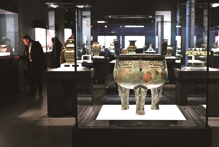 2月2日,观众在上海博物馆东馆中国古代青铜馆参观。