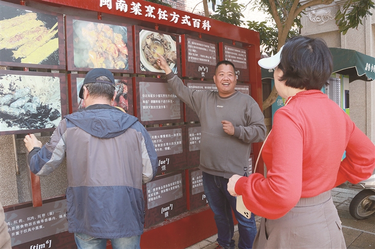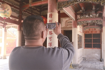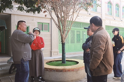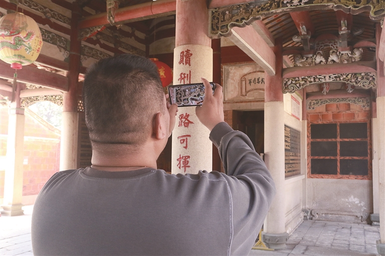 11时,林增典带着旅行团来到古城周边,讲述本土民俗活动。途中,有来石狮自驾游的游客,竟然一眼认出了林增典,“我就是看了您在网上的介绍,来到永宁,感觉不虚此行。”林增典则予以热情的回应。两年前,他通过抖音等网络形式,推荐古卫城,许多外地游客都说是被林增典的讲解风格所吸引,动身来到永宁游玩。