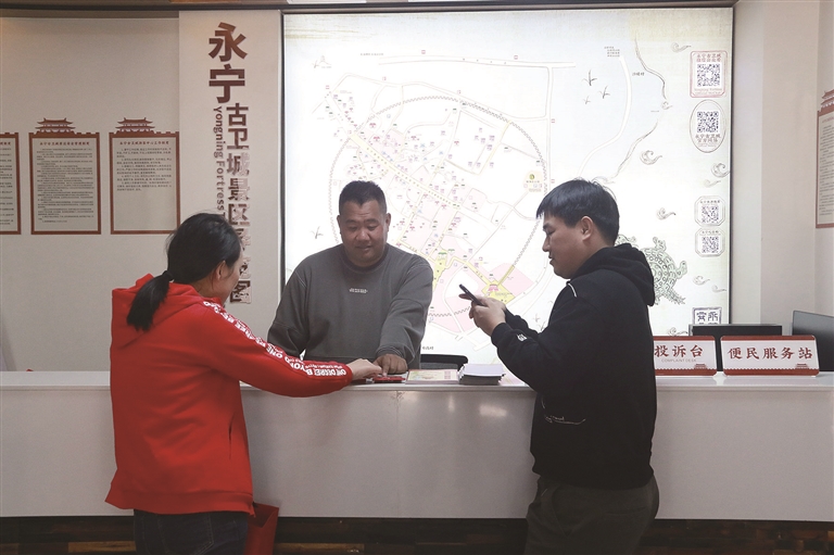 春节越来越近了。连日来,古卫城都会邀请书法名家开展写春联送“福”气的活动。林增典是这项工作的主要联络人之一。上午8时,他早早到达游客中心,趁第一拨预约讲解的游客到来之前,安排好活动的人员和流程。