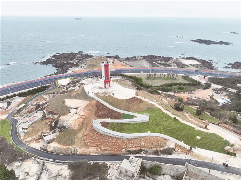 本报讯 作为祥芝滨海界面提升工程项目之一,挨着沿海大通道的祥芝灯塔公园,1月底率先建成了。2月2日,记者航拍了项目新景。这座“小石山”通过环境整理,梳理出一条沥青环道,辅以块石、透水混凝土铺设出两段蜿蜒的登“山”步道,对高点处灯塔周边小广场进行休整,并因地制宜对山坡适种区域进行覆绿,如今已变成一处可达性较好、观景视野极为开阔的休闲好去处。“同步配套给排水、防护栏杆、景观照明等,为村民和游客来渔村游玩新增了一个打卡点。”国投集团土开公司相关负责人介绍。