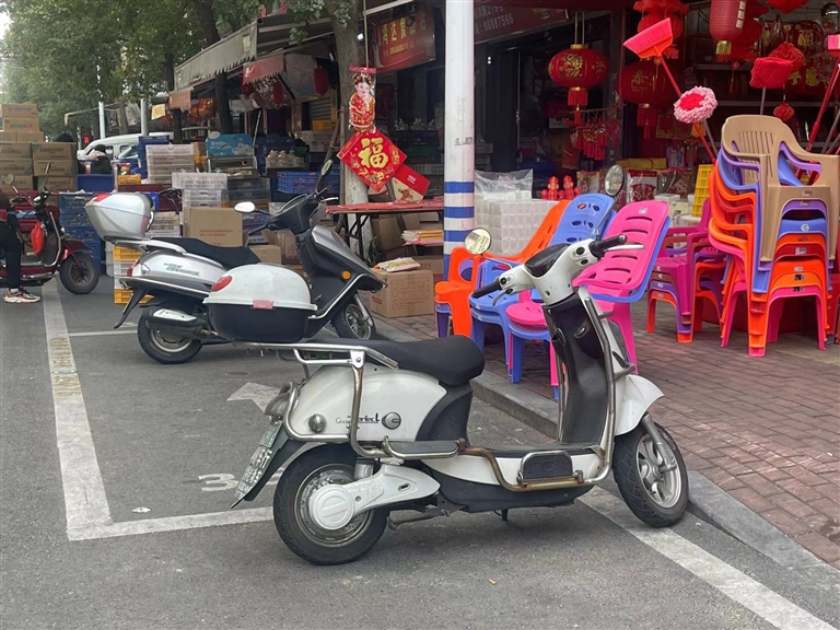 电动车、摩托车完全可以停在店门口和人行道这些非停车位的地方,这种乱停车的行为不仅自私,而且浪费了停车资源。(张诗瑶)