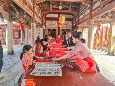 本报讯 2月1日,厝仔村“党建+”邻里中心、村关工委、少年宫、网格中心等联合石光中学、华锦小学开展“墨香暖寒冬 祥龙送吉福”写春联送祝福主题活动。