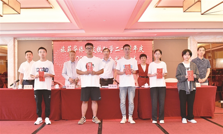 背景:8月17日上午,旅菲侨领蔡友铁助学二十年暨2023年助学金发放仪式举行。