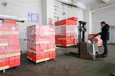 本报讯 2月7日,在位于永宁的石狮正源水产科技开发有限公司,工人们正在把海鲜等冻品大礼盒从冻库中运出来,装车发货,运往全国各地的交易市场。据工作人员介绍,随着春节的临近,这几天海鲜的交易价格比小年前略微上涨,但是订单不减反增,很多市民把海鲜当成走亲访友送礼的佳品。每年春节前一两天,石狮各海鲜市场和海鲜冻库都是交易火爆,进入销售旺季,订单激增。工人们加班加点,“开足马力”满足客户的需求。 (记者 洪亚男 李荣鑫)