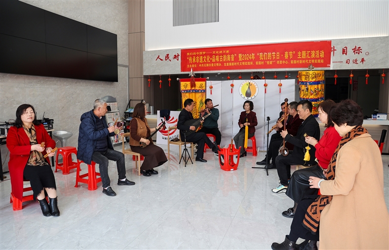 本报讯 2月17日下午,宝盖镇前园村“党建+”邻里中心里余音袅袅、古韵悠悠。由市委文明办、宝盖镇新时代文明实践所、前园村新时代文明实践站联合举办的“传承非遗文化·品味古韵南音”暨2024年“我们的节日·春节”主题汇演活动在这里精彩上演。活动中,十余名南音爱好者齐聚一堂,给大家带来一首首优美的南音,丰富节日文化生活。 (记者 林智杰 颜华杰)