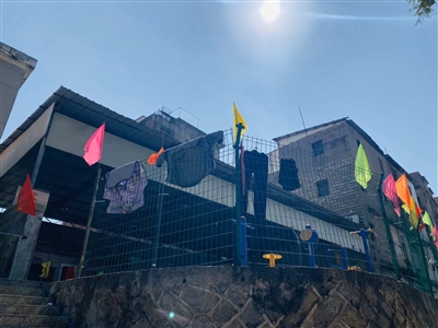 近日,笔者在镇中路附近看到,一处沿街护栏上晾晒了好几件衣服。