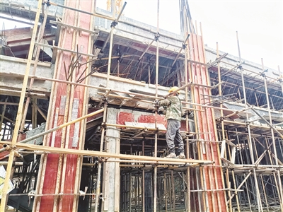 本报讯 节后首个工作日,项目建设也拉开了复工序幕。2月18日上午,记者在八卦街改造提升“三角窗”节点看到,在中庭的商场部分,施工人员已经进场,同步交叉进行一层的内架、模板拆除和二层的内架搭设工作。当日,房地产项目“狮城领秀”也同步复工,成为国投集团下属在建工程首批复工的两个项目。
