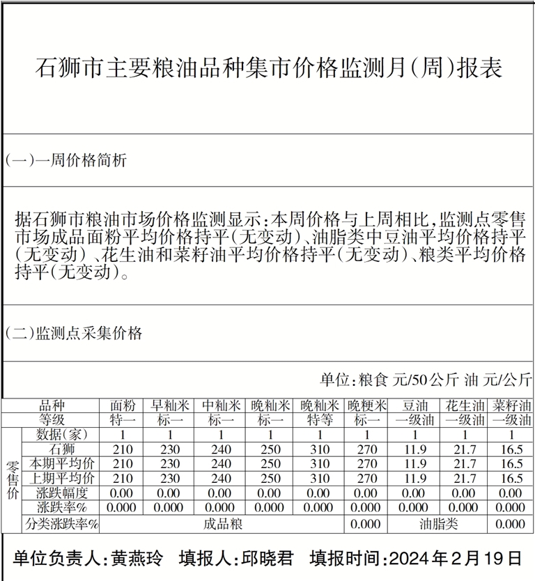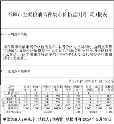 石狮市民生价格信息价比三家 采价日期:2024年2月19日
