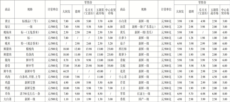 注:本表价格仅反映当日采价时点的价格水平,不作为其他时间购买依据。