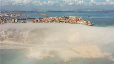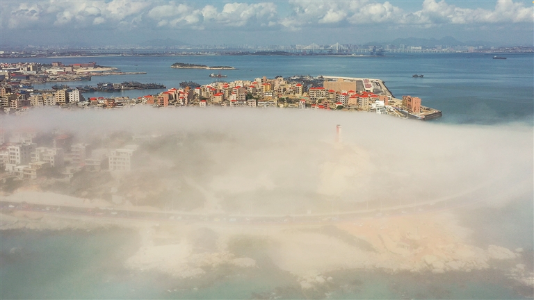 海雾弥漫,大美石狮。2月21日,网友美誉的“小威海”祥芝东大垵、祥芝灯塔公园附近海雾弥漫,雾气中山峦、房屋、灯塔若隐若现,宛若“人间仙境”。(记者 颜华杰)