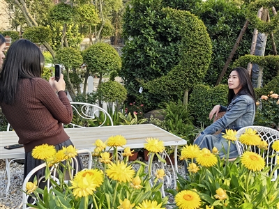 近日,石狮春光正好,记者来到市区一家网红园艺店看到,店内摆满琳琅满目的绿植花卉,各类鲜花竞相绽放,有不少消费者约上好友前来购买、拍照打卡。店内还设有休闲区域,消费者在此品茶、聊天,享受悠闲时光。