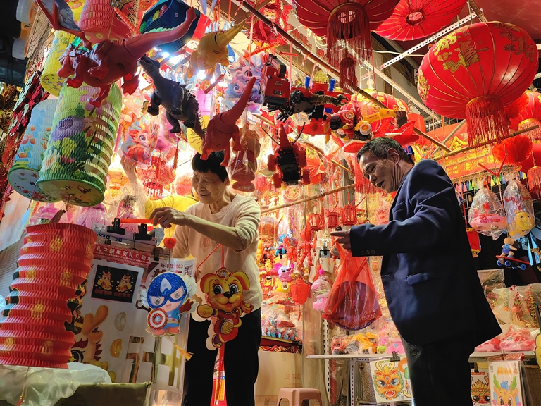 元宵佳节,家家户户挂灯笼是必不可少的传统元素。2月21日下午,记者在石狮城隍庙附近的多家门店看到,琳琅满目的红灯笼挂满了店内和店外,使整条街远远望去都十分醒目,吸引众多市民和游客驻足欣赏和选购。据店主介绍,每年元宵节都是灯笼热销时段,从目前的销量和订单看,今年比往年还要火爆。