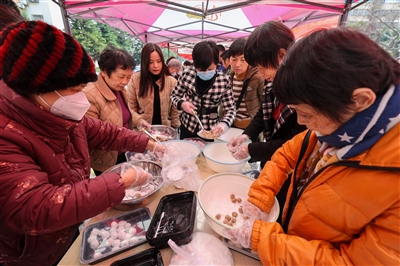 本报讯 2月23日下午,宝盖镇多个村居纷纷开展“我们的节日·元宵”主题活动,邻里们欢聚一堂,或是搓汤圆,或是做花灯,或是玩游戏,欢欢喜喜迎元宵。