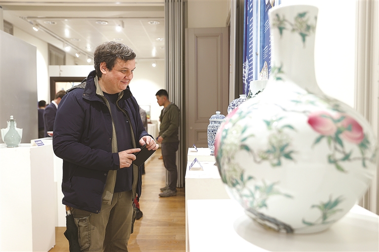 2月22日,人们在比利时布鲁塞尔中国文化中心参观“丝路瓷行”——中国景德镇陶瓷文化特展。
